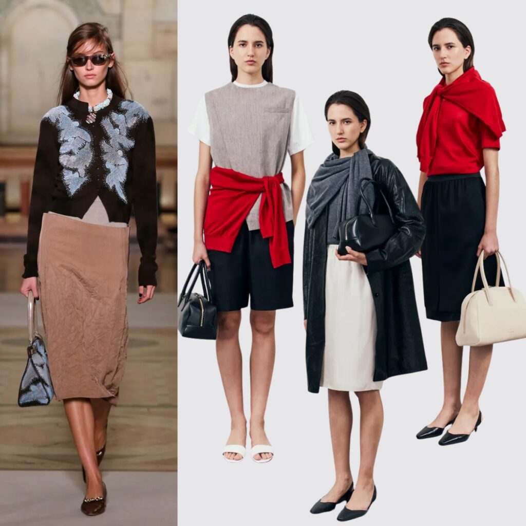 The column skirt is one of the clearest silhouettes of the season, and for good reason. It is sleek, unfussy, and highly adaptable. There is a faint Carolyn Bessette-Kennedy memory to it, but the 2026 version feels less nostalgic and more open to reinterpretation.