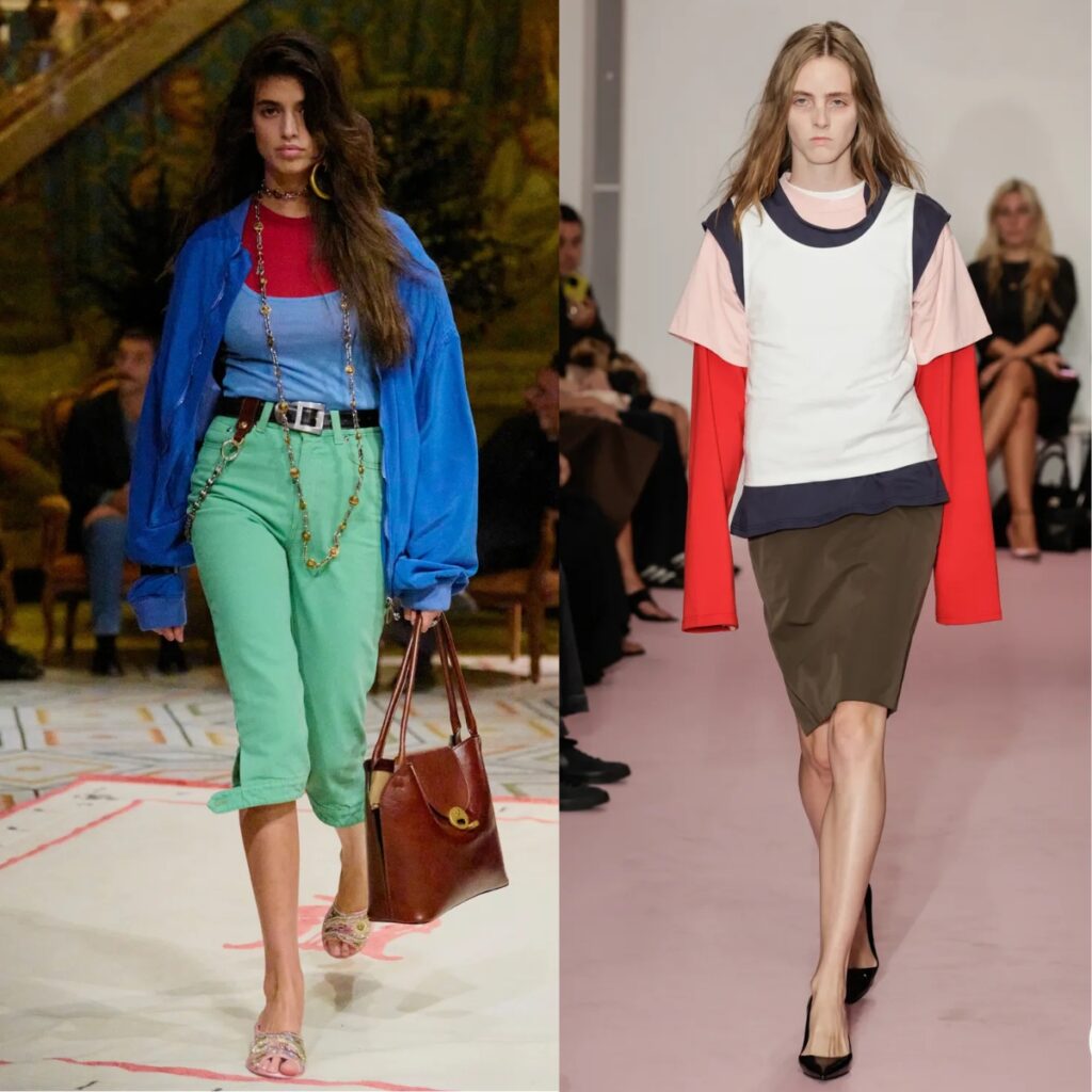 One of the most playful ideas of the season is the return of layered colourful T-shirts. There is a faint 1980s energy to it, but done with more restraint. Think contrast without chaos.