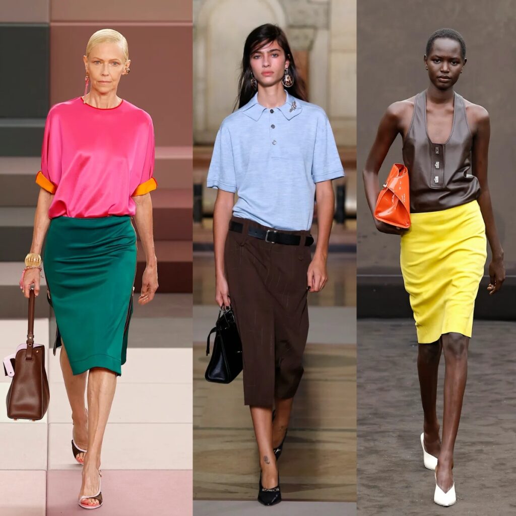 Seen across collections from Fendi, Saint Laurent and Tory Burch, the column skirt works beautifully with T-shirt layering, leather jackets, cardigans, oversized shirts and fine knits. It gives shape without making too much noise.