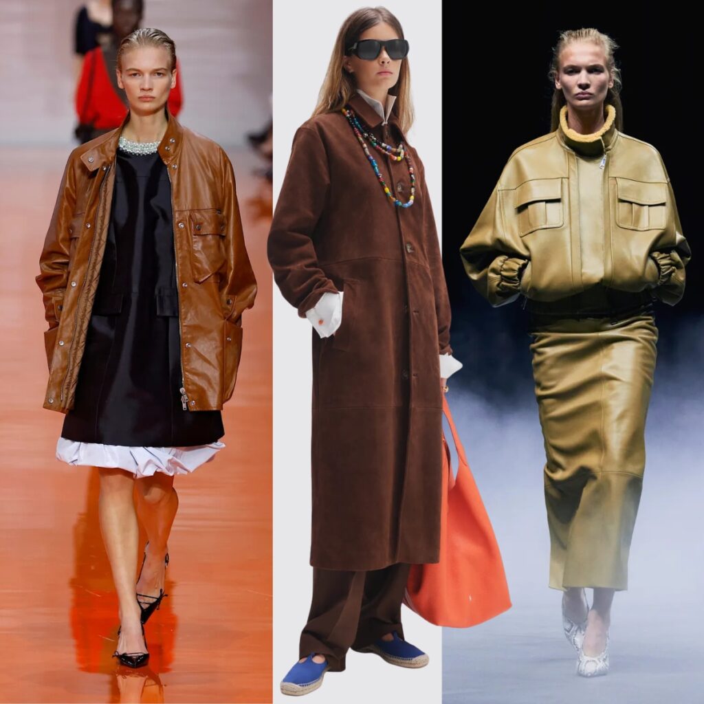From bomber jackets to leather blazers, trench coats to biker jackets, leather outerwear is one of the clearest seasonal anchors. Not because it is shocking, but because it gives contrast.