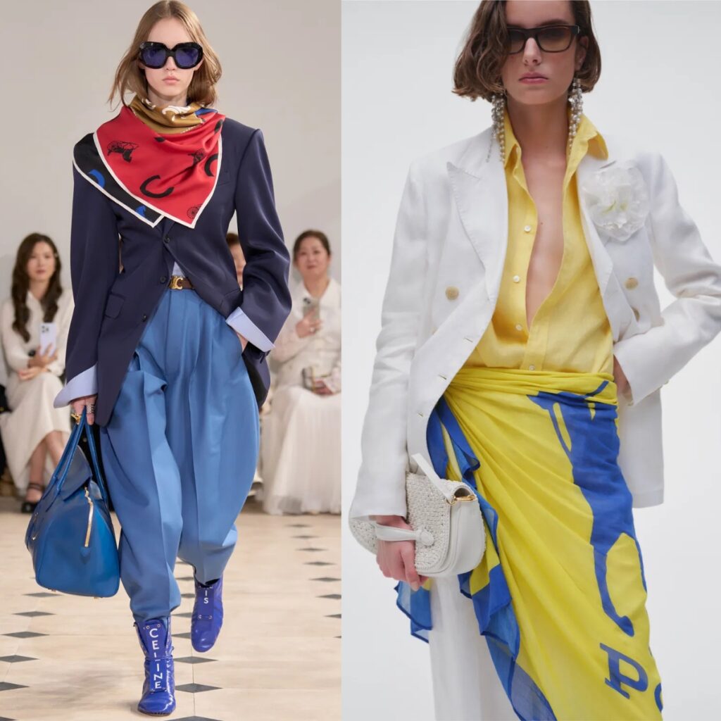Celine remains a useful reference point for scarf styling that feels grown-up rather than costume-like. The scarf is back, but not as an afterthought.