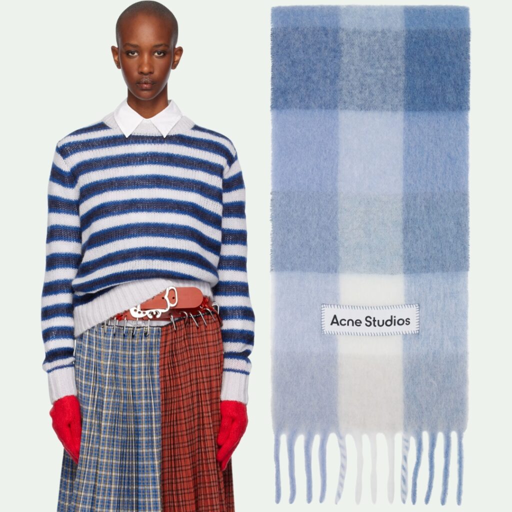 Charles Jeffrey LOVERBOY Blue & White Mohair Gloves Sweater and Acne Studios Mohair Scarf