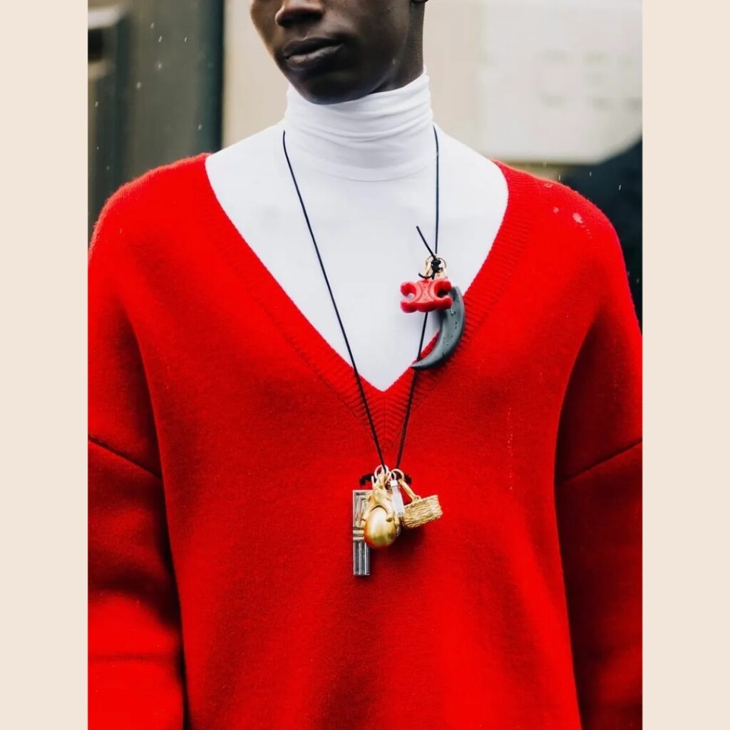 - Cape Cardigan: Button up a cardigan, toss it over your shoulders like a cape, and layer a necklace half-under, half-over. This runway idea is 100% wearable in real life, if you’ve got the attitude.
